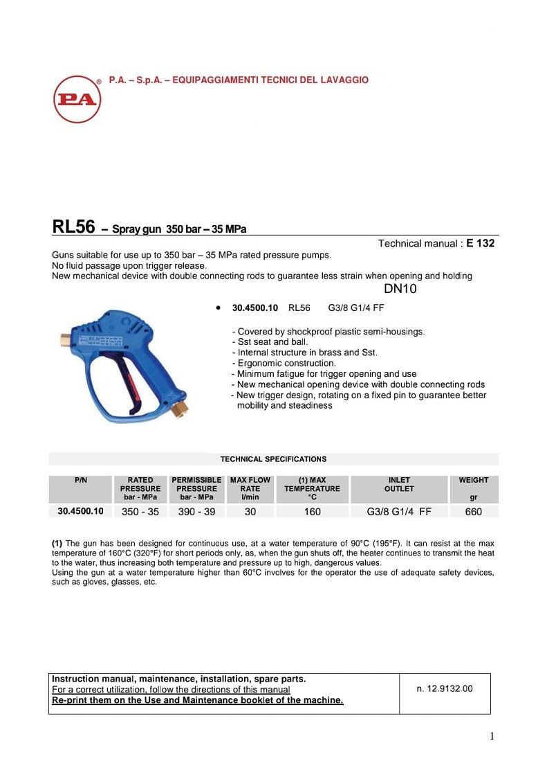 意大利PA产品涵盖范围:意大利PA提供高压泵专用意大利PA调压阀, 意大利PA RL56高压喷枪,意大利PA高压溢流阀,意大利PA高压安全阀,意大利PA工业喷嘴及高压泵配件。 意大利PA调压卸荷阀、意大利PA安全保护阀、意大利PA高压蒸汽喷枪、意大利PA泡沫喷枪、意大利PA喷头喷嘴、意大利PA容器罐清洗器、过滤器、意大利PA快速接头、 意大利PA旋转接头、旋转臂......等意大利PA高压清洗机设备所需的配件。